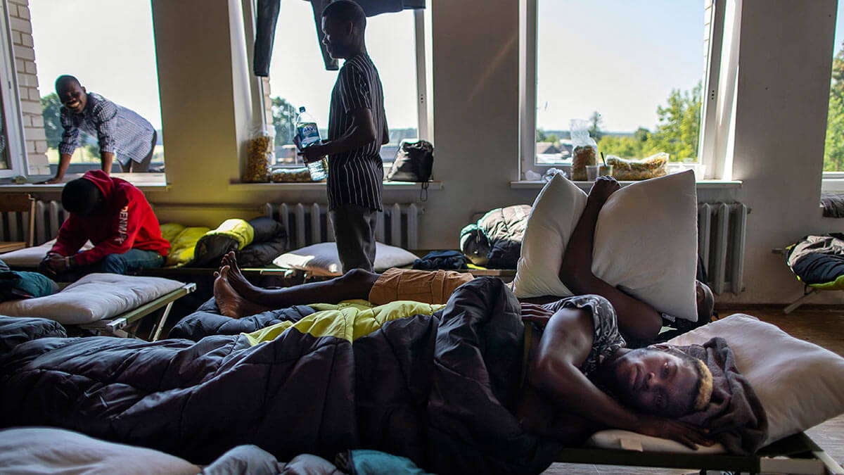 Камерунские мигранты в лагере для беженцев у села Выденяй, Литва