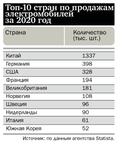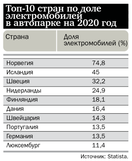 По данным британской The Guardian, мировые продажи электромобилей в прошлом году увеличились на 43%, до 3 млн единиц. И это несмотря на то, что общие продажи авто из-за коронакризиса сократились на одну пятую. В Норвегии, например, электрокары составили более половины (54,3%) всех проданных новых автомобилей, а их общая доля в транспортном парке подобралась к 75%. К 2025 году эта северная страна намерена полностью отказаться от продаж новых транспортных средств на бензине и дизеле.