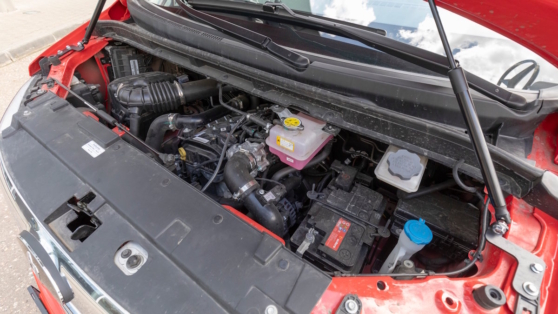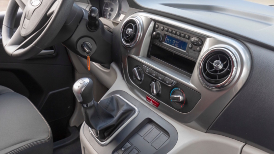 Что совсем непривычно для коммерческого фургона, под капотом не дизель, а безальтернативный бензиновый 1,5-литровый турбомотор мощностью 136 л. с. Вроде бы скромно, однако, как показал не слишком долгий (но доказательный!) опыт эксплуатации, фургону этого вполне хватает. Видимо, потому, что этот бензиновый мотор обладает почти дизельными характеристиками. Например, нормальную тягу он выдает уже с холостых. И «всего» пяти ступеней механической коробки достаточно. Кстати, приятная на ощупь рукоятка КПП расположена очень удобно, на приборной панели.
