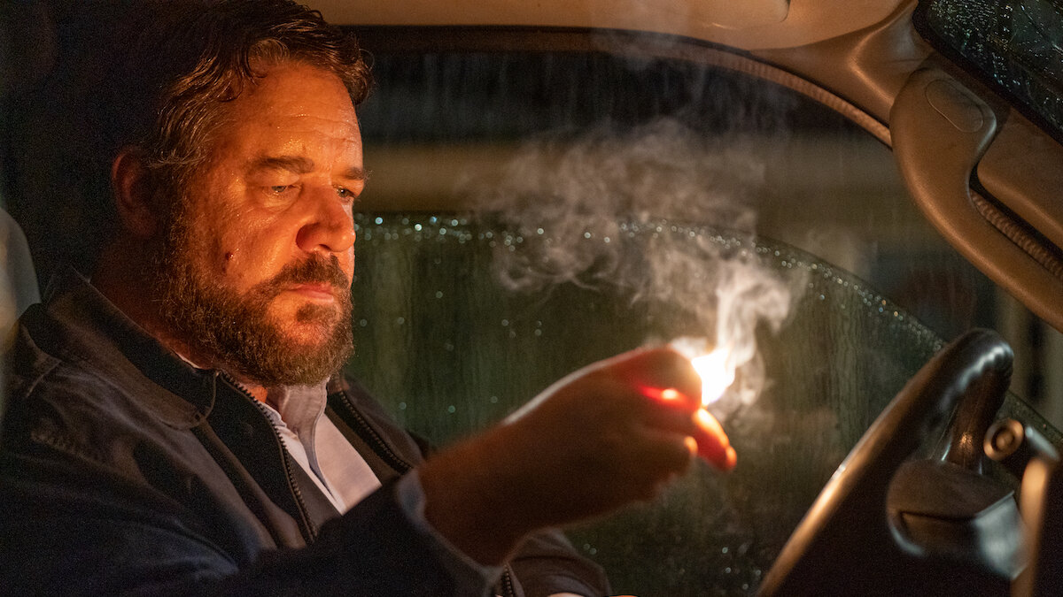 Главная приманка картины – располневший и зловещий Рассел Кроу в роли антигероя. С первых кадров очевидно, что шутить с ним не стоит. Безымянный персонаж Кроу уже в самом начале фильма, наглотавшись таблеток, зарубает топором посреди ночи двоих людей и поджигает их дом.
