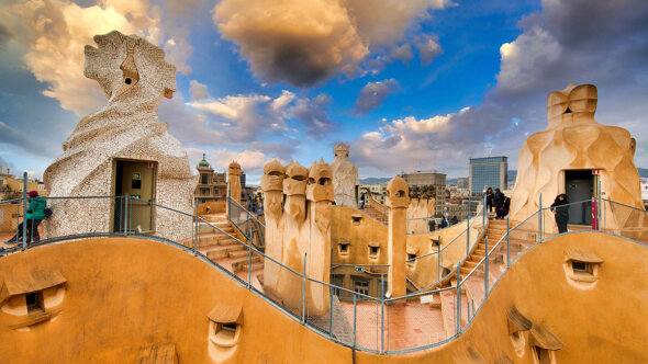 Дом Мила стал как раз таким испрошенным светским проектом – впрочем, не совсем светским. Согласно проекту, его должна была венчать 25-метровая статуя Богородицы, но хозяева решили обойтись без нее. Летом 1909-го во время уличных беспорядков, вызванных военным призывом в Каталонии и вошедших в историю как «Трагическая неделя», в Барселоне были разграблены и разрушены 23 церкви и три монастыря. Анархо-синдикалисты и группировки «молодых варваров» вымещали гнев на церковниках. После таких происшествий владельцы Дома Мила решили, что статуя Девы Марии при новых погромах привлечет внимание вандалов.