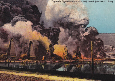 Но все предыдущие сложности померкли перед тем, что случилось в 1905 году, – череда армяно-азербайджанских погромов, множество забастовок, террористических актов и новая техногенная катастрофа. С февраля 1905 года в Баку и окрестностях началась настоящая уличная война армян и азербайджанцев, особенно обострившаяся в августе на фоне экономических забастовок. Царские войска пытались разогнать погромщиков обеих сторон, и тогда воюющие между собой националисты стали стрелять в солдат. В итоге на улицах Баку минимум четыре стороны убивали друг друга – правительственные силы, революционеры-социалисты, армянские и азербайджанские националисты. Счет убитым шел на многие сотни, для подавления беспорядков войска применяли даже артиллерию. Неудивительно, что с 20 августа 1905 года вспыхнули пожары на нефтяных промыслах (на фото). Историки до сих пор спорят, кто же был их непосредственным виновником, но доподлинно известно, что за пять суток сгорело 1429 нефтяных вышек – свыше 58% всех нефтепромыслов Каспия. От пожаров пострадала и вся инфраструктура – перегонные заводы, мастерские, жилые дома рабочих и специалистов. В хранилищах сгорело почти 6 миллионов пудов нефти. Число человеческих жертв неизвестно, пожары лишь подхлестнули погромщиков. Армяно-азербайджанские столкновения продолжались до октября, а с ноября и до конца 1905 года весь Баку, включая нефтепромыслы, из-за очередной забастовки оставался без телеграфной и телефонной связи с остальной страной.