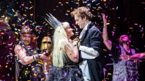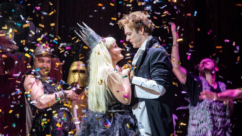 Серенада Трубадура и другие обязательные номера, конечно, занимают у Марчелли полагающееся место (на сцене играет живой оркестр, который иногда выдает не только Гладкова, но и нечто фанковое «от себя»), однако важно и то, что происходит между песнями. А между ними происходит нечто очень веселое, и это веселье время от времени вырывается в зрительный зал, куда вдруг летят подушки, конфетти и куда сбегает посрамленная охрана Глупого Короля и прочие действующие лица.