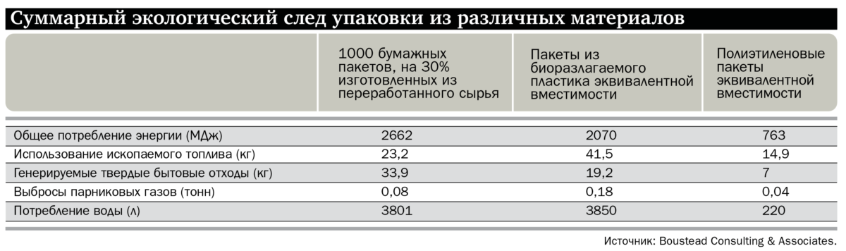 «Если посмотреть на весь жизненный цикл изделия, мы придем к неожиданному выводу, что полиэтилен не так уж плох. На изготовление бумажного пакета тратится больше ресурсов, что, кстати, выражено в его цене. Не надо обманываться, думая, что вы переплачиваете за экологичную продукцию», – отмечает собеседник.