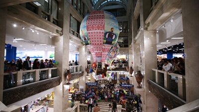 После реконструкции общая площадь здания выросла с 54 500 до 73 000 кв.м. Часть торгового центра выделена под развлекательную и развивающую зону, где разместились кинотеатр и площадки для проведения детских концертов и выставок. На каждом этаже здания обустроены интерактивные зоны с обучающими и развлекательными программами для детей - «Космическая площадка», «Виртуальный аквариум», «Библиотека», «Волшебная лента».