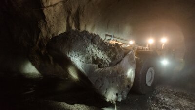 После инструктажа и расписывания в особом журнале мы, переодетые в полную шахтерскую амуницию, экипированные фонариками на касках и самоспасателями, отправляемся к клетевому подъемнику, который уносит нас со скоростью 6 метров в секунду на отметку -1075 метров – именно настолько мы оказываемся ближе к центру земли.