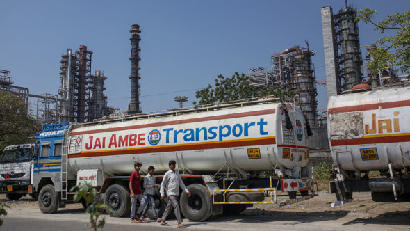 Бензовоз возле нефтеперерабатывающего завода индийской компании Bharat Petroleum Corp. Ltd. в Мумбаи, 4 апреля 2023