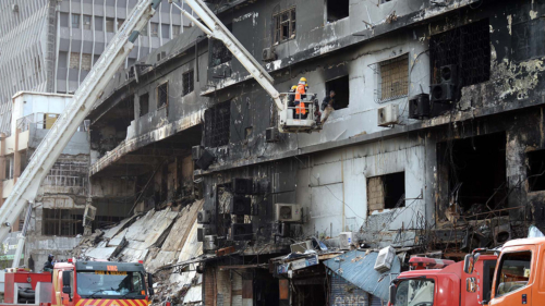 Огонь охватил первый этаж торгового комплекса, расположенного в густонаселенном районе Карачи, вечером 17 января. Пожар быстро охватил верхние уровни четырехэтажного здания площадью более 6500 кв. м. Здание частично обрушилось и горело трое суток, прежде чем пламя удалось окончательно потушить.