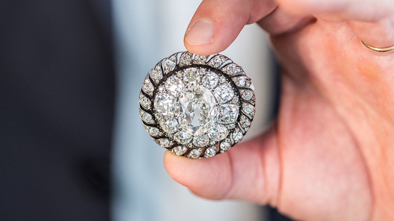 Изделие начала XIX века представляет собой овальный бриллиант весом 13,04 карата, обрамленный почти сотней алмазов различной формы и размера. Украшение, предположительно, изготовлено в 1810 году в одном из парижских ателье, последние несколько лет брошь находилась в частной коллекции.