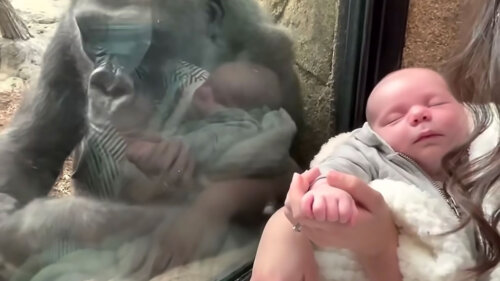 На кадрах, снятых супругом Эмили и размещенным на YouTube-канале зоопарка видно, как животное приблизилось к стеклу павильона и начало с интересом рассматривать гостью и ее младенца. Женщина поднесла завернутого в одеяло сына ближе к стеклу, и горилла даже попыталась дотронуться до него. А потом показала Эмили своего ребенка – семимесячного Пабло.