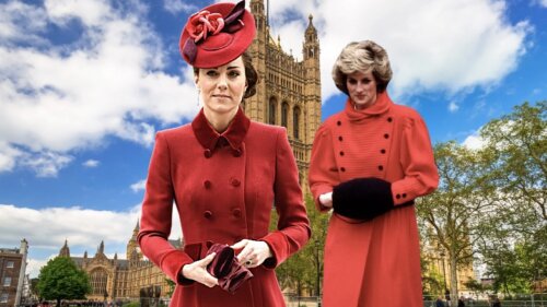 Журналисты издания заметили, что Миддлтон повторила наряд принцессы Дианы, в котором она появилась в Бирмингеме в 1984 году. Диана была сфотографирована в похожем пальто красного цвета бренда Catherine Walker с черным воротником, нейлоновых колготках и лодочках на низком каблуке. Ее образ дополняла красная шляпа и маленький клатч.