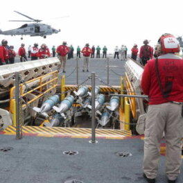 О завершении монтажа подъемников сообщает Naval News. Отмечается, что новые лифты с электромагнитными двигателями обеспечивают более быструю и безопасную подачу боеприпасов из оружейных погребов на палубу корабля и обратно.