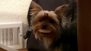 Собака не стала грызть незнакомый предмет и просто зажала его в пасти. Хозяин не смог удержаться и снял увиденное на камеру.