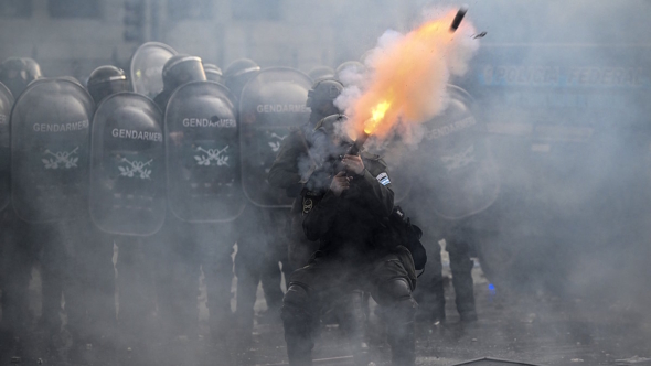 Стражи правопорядка оттеснили демонстрантов с проезжей части, применив слезоточивый газ, дубинки, щиты и резиновые пули. Некоторым людям потребовалась медпомощь, передает ТАСС.
