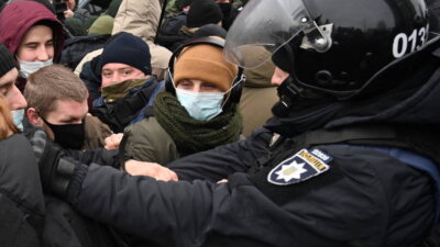 Как сообщает ТАСС, демонстранты устроили столкновения с киевской полицией. Они кидают в них дымовые шашки, файеры и снежки. Полиция отвечает слезоточивым газом. Информация о задержанных пока что не получила официального подтверждения. Митингующие попытались прорваться к зданию администрации украинского президента, но полиция и военнослужащие Нацгвардии их остановили.