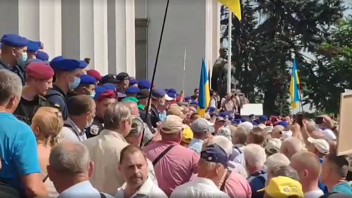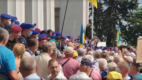 В среду, 14 июля, ветераны украинских силовых структур вышли на акции протеста в Киеве и областных центрах страны, с требованием пересчета пенсий. Возле Рады собрались более тысячи бывших силовиков, сообщает телеканал "Украина-24".