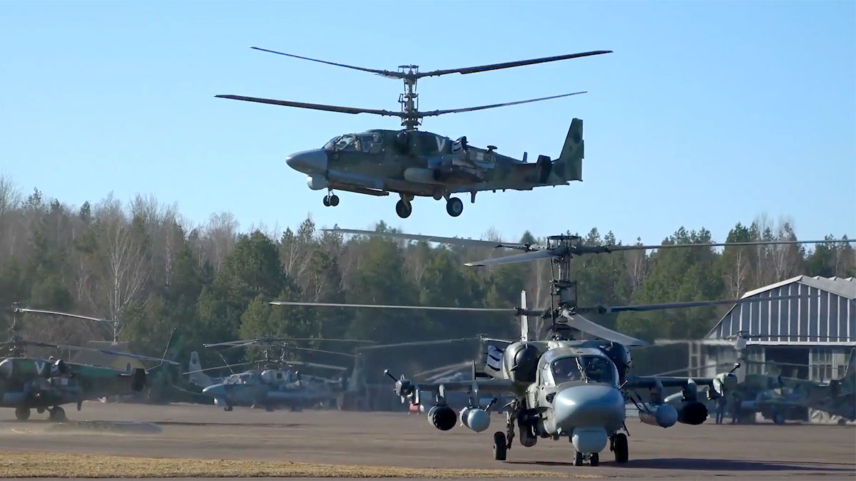 В Минобороны уточнили, что в результате российские ударные вертолеты Ка-5 уничтожили позиции бронетехники Вооружённых сил Украины, замаскированные в лесистой местности.