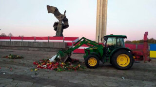 Парламентарий опубликовал фотографии с места событий, на которых видно, что выложенные у мемориала цветы сгребает бульдозер.