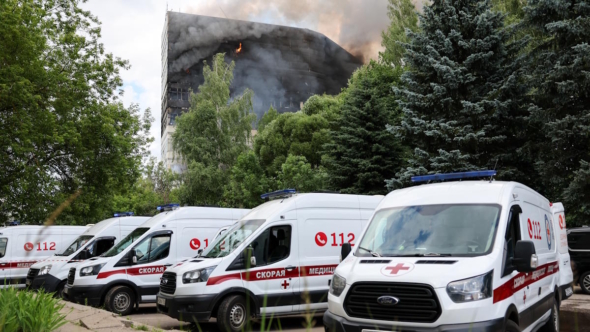 На текущий момент полностью выгорели четыре этажа офисного здания во Фрязино. Запах гари от пожара чувствуется в нескольких километрах от места ЧП.
