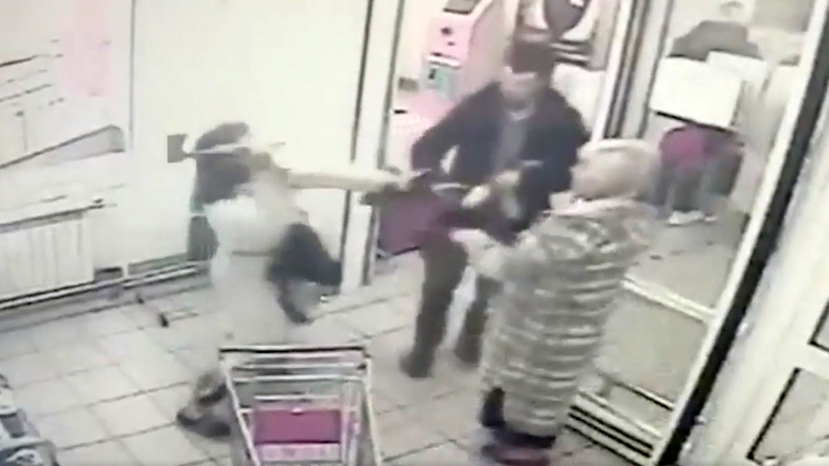 На кадрах с камер видеонаблюдения видно, как одетый в светлое платье мужчина вступает в перепалку с посетительницей магазина из-за тележки. Спустя минуту он достал из сумки топор и набросился с ним на женщину и стоявшего рядом с ней мужчину.