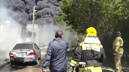 Пожар начался после того, как накануне ночью на территории завода упали обломки сбитых беспилотников. В результате никто не пострадал. Это уже третья атака на объекты нефтебазы за последний месяц. В Туапсе направили отряды спасателей из Адыгеи, Ростовской области и Ставропольского края.