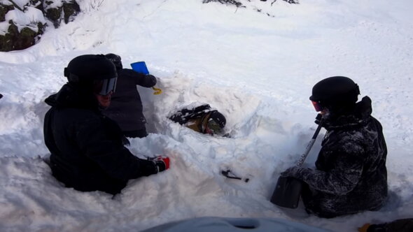 На видео, которое засняли его друзья, можно заметить, как группа отдыхающих катается на горных склонах, после чего одного из них полностью накрывает снегом. На помощь туристу приходят другие лыжники и откапывают его.