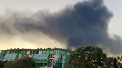 В районе хлопка поднимается густой черный дым.
