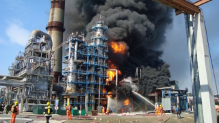 "Подразделения МЧС работают по сообщению о загорании дизельного топлива технологической установки на отметке 20 метров на территории ОАО «Нафтан» в Новополоцке", – говорится в сообщении, опубликованном в Telegram-канале министерства.
