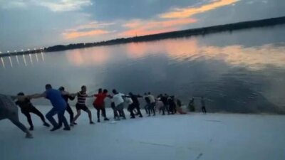 На кадрах видно, как к утопающей подплывает мужчина, а на берегу его ждут люди, готовые вытащить пострадавшую. По словам очевидцев, 32-летняя женщина доплыла почти до середины реки, а потом начала звать на помощь.