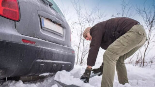 Также в багажнике не помешают цепи противоскольжения на случай сильного гололеда. Однако их нужно использовать осторожно, чтобы не повредить шины и не пораниться самому. Кроме того, эксперты советуют взять с собой небольшой мешок с песком – опять же на случай гололеда, а также фонарик, мобильный телефон, еду, термос с горячим напитком, запасную теплую одежду и одеяло.