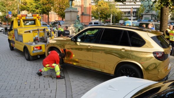 Автомобиль временно передали специалистам для более тщательной экспертизы. По её результатам будет установлено, представляет ли золотая машина опасность для участников дорожного движения. Как сообщает источник, 30-летнему водителю пришлось идти домой пешком.