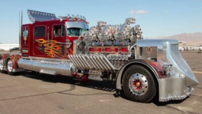 А всего на этот проект было потрачено 7 млн долларов. Изначально седельный тягач образца 1984 года назывался Peterbilt 359, но после того, как за него взялось тюнинг-ателье из Аризоны, его решили переименовать в Thor24.