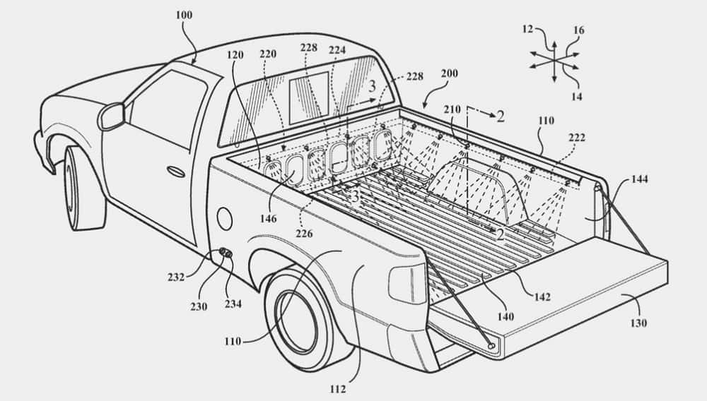 Согласно патенту, заявку на который компания уже подала в Ведомство по патентам и товарным знакам США, система интегрирована в грузовой отсек автомобиля. В левом борту скрыт резервуар для воды, а по всему периметру встроены форсунки омывателя. Система также может быть оснащена таймером для отложенной мойки и датчиками, которые определяют, есть ли в кузове груз, сообщает канадское издание Driving.