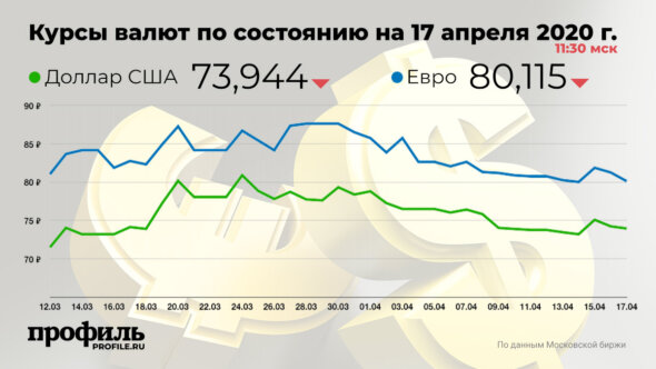 Средневзвешенный курс евро упал на 1,12 руб., до 80,1154 руб. Стоимость бивалютной корзины снизилась на 93 коп. и составила 76,72 руб.