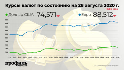 Ранее, вечером 27 августа, официальный курс доллара к рублю увеличился на 1,03 рубля, до 75,537 рубля. Курс евро вырос на 1,17 рубля – до 89,225 рубля.
