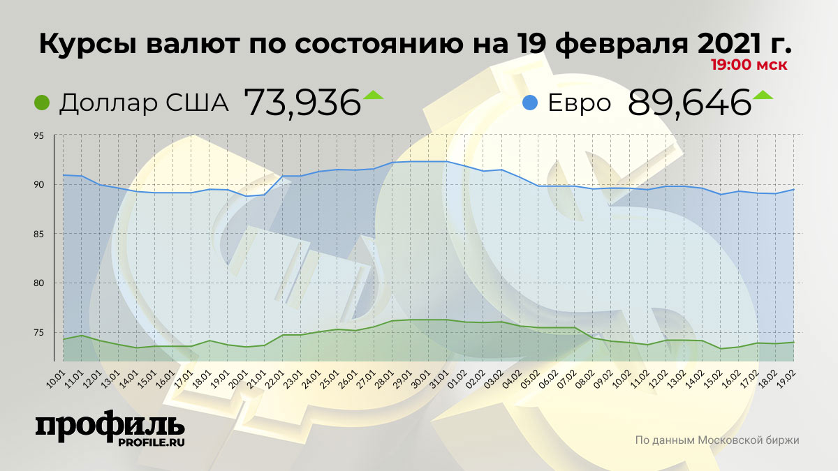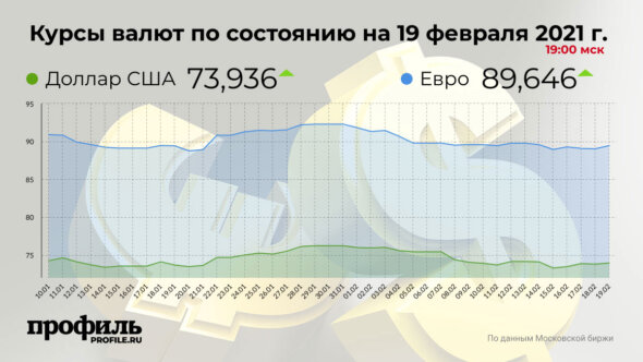 Курсы валют по состоянию на 19 февраля 2021 г. 19:00 мск