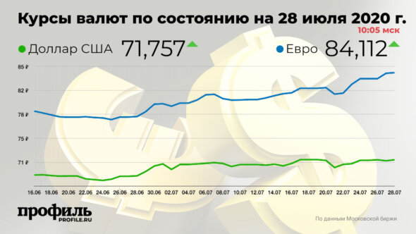 Курсы валют по состоянию на 28 июля 2020 г. 10:05 мск