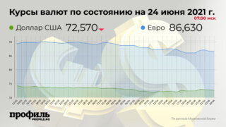 Напомним, что накануне, 23 июня, на закрытии торгов Мосбиржи средневзвешенный курс доллара со сроком расчетов "завтра" понизился до 72,6 рубля. Одновременно с этим европейская валюта подешевела по отношению к рублю до отметки в 86,72 рубля. Курс доллара упал на 5449 пунктов. Курс евро понизился на 3425 пунктов. На торгах Московской биржи один пункт соответствует 0,01 коп.