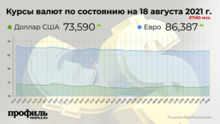 Накануне вечером, 17 августа, средний курс доллара США по итогам торгов на Мосбирже со сроком расчетов "завтра" повысился на 905 пунктов (1 пункт соответствует 0,01 коп.), до 73,47 рубля. Минимальный курс доллара составил 73,31 рубля, максимальный – 73,57 рубля.