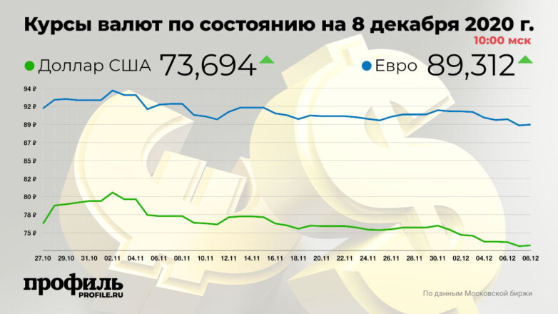 Курсы валют по состоянию на 8 декабря 2020 г. 10:00 мск