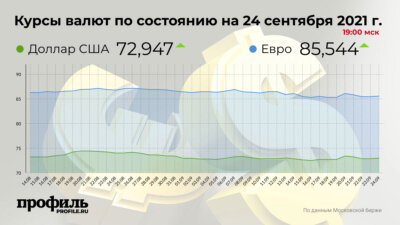 Как писал сайт Profile.ru, на открытии торгов Московской биржи 24 сентября курс доллара к рублю не изменился по сравнению с показателями прошлого дня, американская валюта осталась на уровне 72,84 рубля. Курс евро, в свою очередь, снизился.