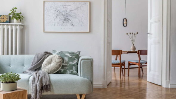 Полки, боковые шкафы, прикроватные тумбочки и журнальные столики можно украсить с помощью простых аксессуаров из специализированных магазинов. Подойдут вазы, керамические горшки, свечи и искусственные растения. Однако важно соблюдать "правило трех" – это означает, что предметы нужно группировать по три. Нечетное число придает визуальный интерес. Лучше использовать предметы разной высоты и фактуры.