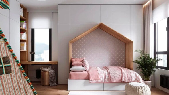 Все электросистемы и приборы должны быть дополнительно защищены или находиться вне досягаемости ребенка. Мебель – без острых углов. На пол можно постелить мягкий ковер. В комнате должны быть все необходимые зоны: для отдыха, развивающих и активных игр, уроков и чтения. Место для учебы важно сделать хорошо освещенным. Рабочий уголок не обязательно должен включать массивный, громоздкий стол. Его можно сделать продолжением подоконника, а свободное пространство под столешницей использовать для коробки или корзины с игрушками.