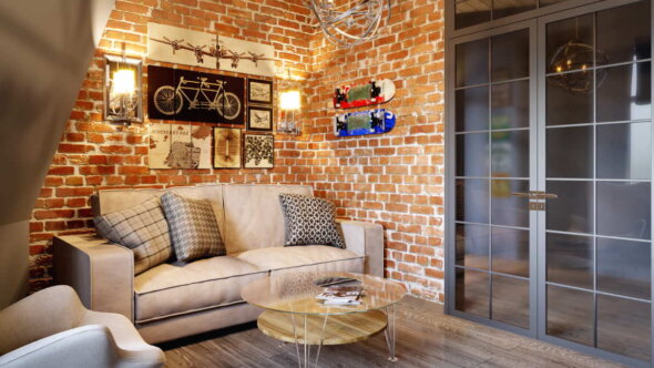 Изначально кирпичная кладка была характерным элементом стиля лофт, однако с течением времени этот декор перестал быть зажат в эти рамки. Для современных квартир, где редко можно найти подходящую кирпичную стену, хорошо подойдут имитации.
