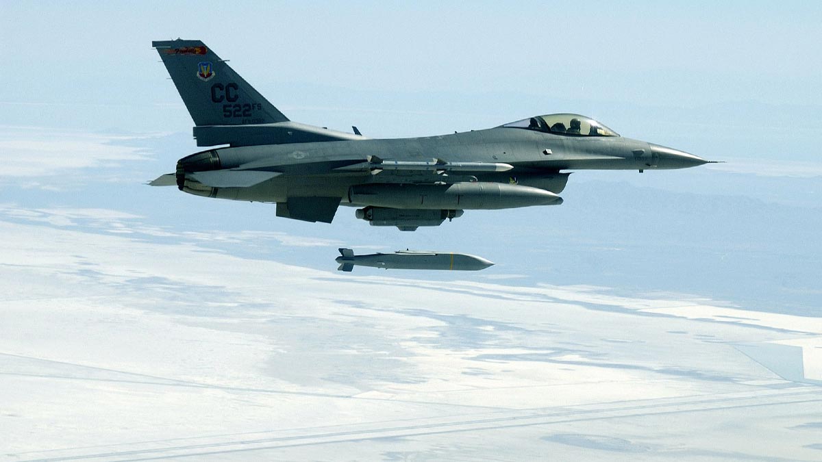F-16 может применять ядерное оружие. Некоторые модификации способны нести на внешней подвеске термоядерные бомбы изменяемой мощности B83 или B61.