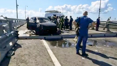 Утром 17 июля глава Крыма сообщил, что движение по Крымскому мосту было остановлено из-за ЧП. Позднее в Национальном антитеррористическом комитете заявили, что атаку совершили украинские спецслужбы, они использовали два надводных беспилотника. В ГСУ СК России возбудили уголовное дело о теракте. В Кремле в свою очередь сообщили, что ответом на атаку на Крымский мост будет достижение всех целей спецоперации.