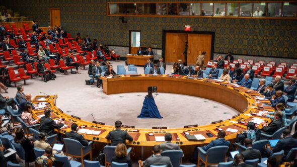 В ходе голосования делегация РФ выступила против принятия этой резолюции. Бразилия, Габон, Индия и Китай воздержались. За принятие резолюции проголосовали Албания, Великобритания, Гана, Ирландия, Кения, Мексика, Норвегия, ОАЭ, США и Франция.
