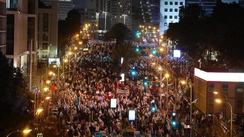 Наиболее массовый митинг прошел в Тель-Авиве, уточняет ТАСС. На нем собрались около 180 тыс. человек. Они бьют в барабаны и поют песни. Группа протестующих перекрыла одну из крупных транспортных магистралей на востоке города – шоссе Аялон. Для разгона участников полицейские использовали водометы.