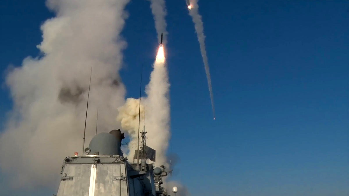 Пуск ракет "Калибр" с фрегата Черноморского флота (иллюстрация)