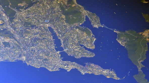 На снимках хорошо различим Кронштадт, в котором состоялся главный парад ВМФ с участием президента Владимира Путина. В параде приняли участие боевые корабли крупного водоизмещения. «Звездой» морского парада стало океанографическое исследовательское судно «Адмирал Владимирский», совершивший длительную экспедицию, посвященную 200-летию открытия Антарктиды и 250-летию со дня рождения Ивана Крузенштерна.